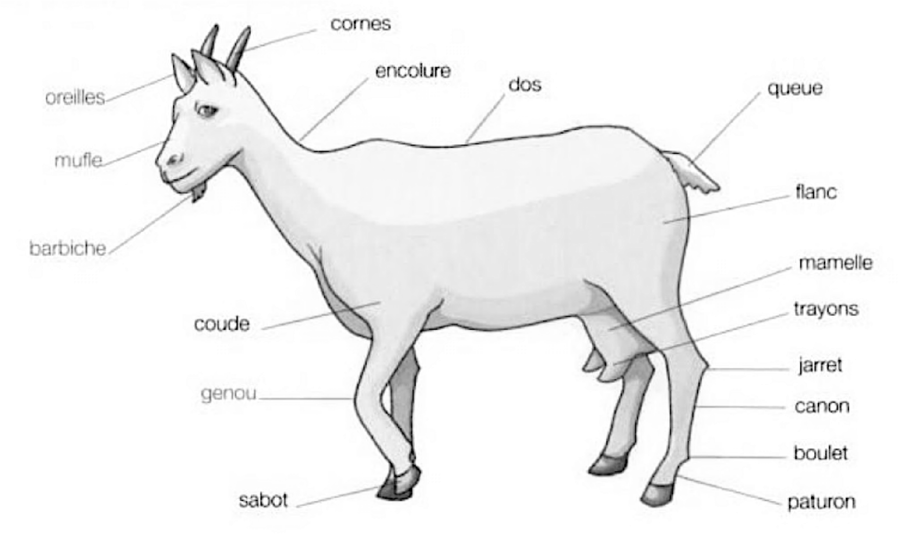 Figure 2. Régions corporelles extérieures chez la chèvre